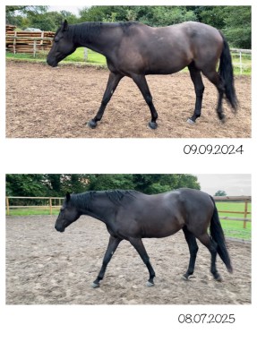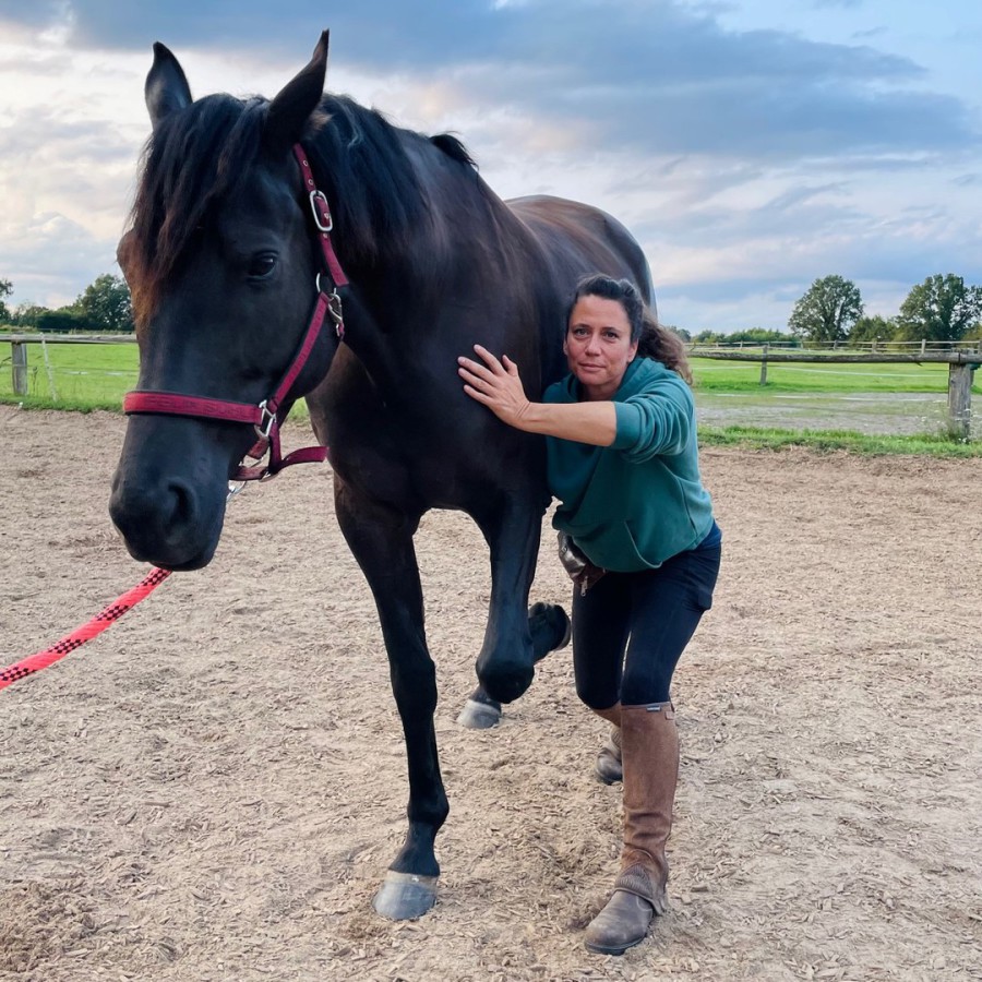 Mein Herzblut klebt aber am Physiotherapeutischen Training, schon immer war meine Verbindung zu Pferden sehr empatisch, aber den Ausschlag gab mein eigenes Pferd, Nero, der mit Baustellen zu mir kam. Mit ihm zusammen habe ich das Training der Tragestärke entwickelt auf das wir beide sehr stoz sind und das ihm sehr geholfen hat.