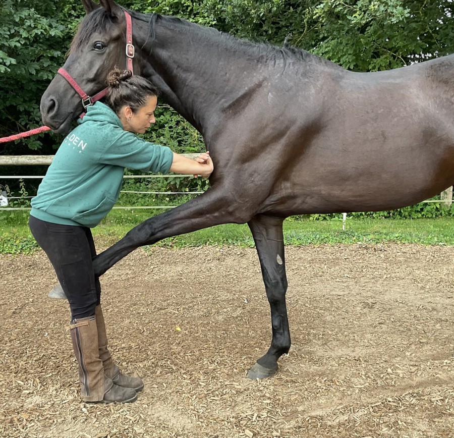 In der Pferde-Physiotherapie behandle ich Funktionsstörungen im Bewegungsapparat des Pferdes. Ich beurteile Haltung, Gangbild und Muskulatur, löse Verspannungen durch manuelle Techniken wie Massage, Dehnungen und Mobilisationen und unterstütze die Regeneration nach Verletzungen. Ziel ist es, Schmerzen zu reduzieren, die Beweglichkeit zu verbessern und die Leistungsfähigkeit des Pferdes nachhaltig zu fördern.